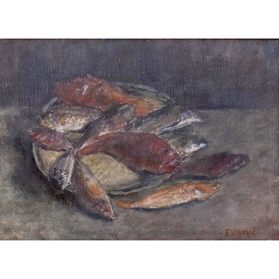 Attracted by scenes and memories from Trogir, for some time Vidović abandoned the good spirits of his atelier. He returned to them as late as the end of the 1930s—his most prolific phase. In two years he painted the brilliant Old Madonna (1938), Still Life with Church Objects (1938), Old Paints and Brushes (1938), Madonna with Brushes (circa 1939), The Chinese Doll (1939), mainly oil or gouache on paper.